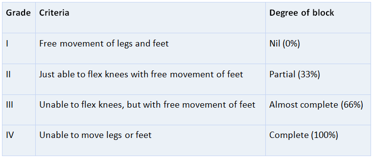 Bromage Score - to Assess Leg Weakness with Epidural